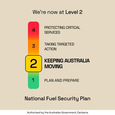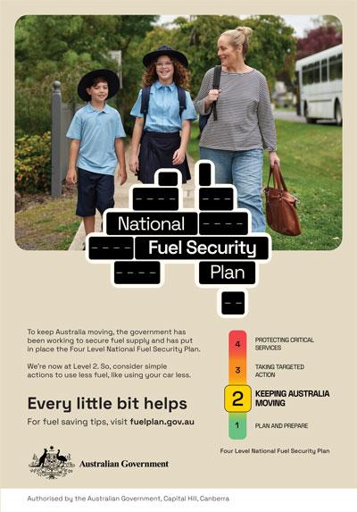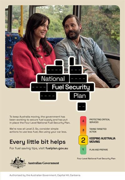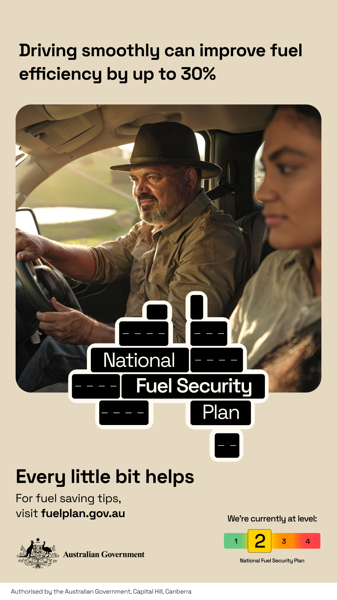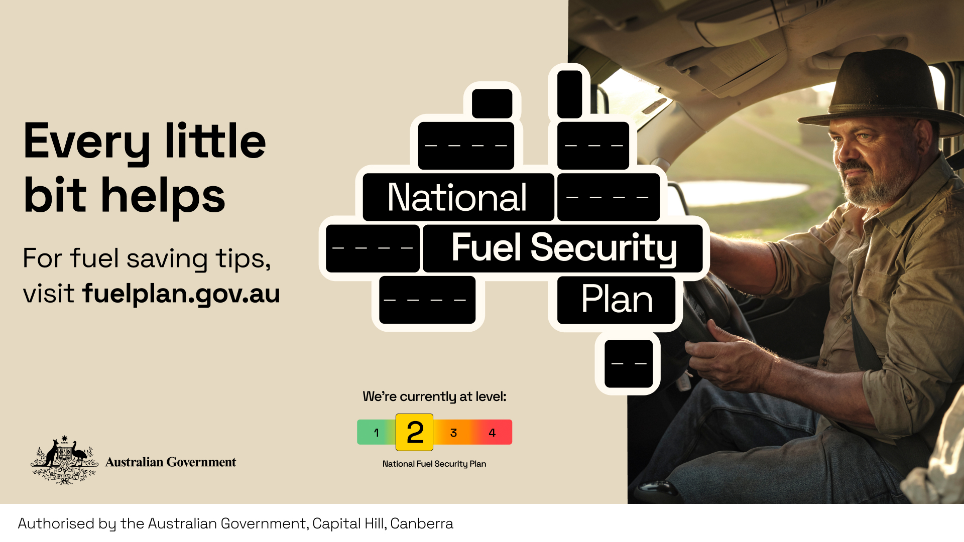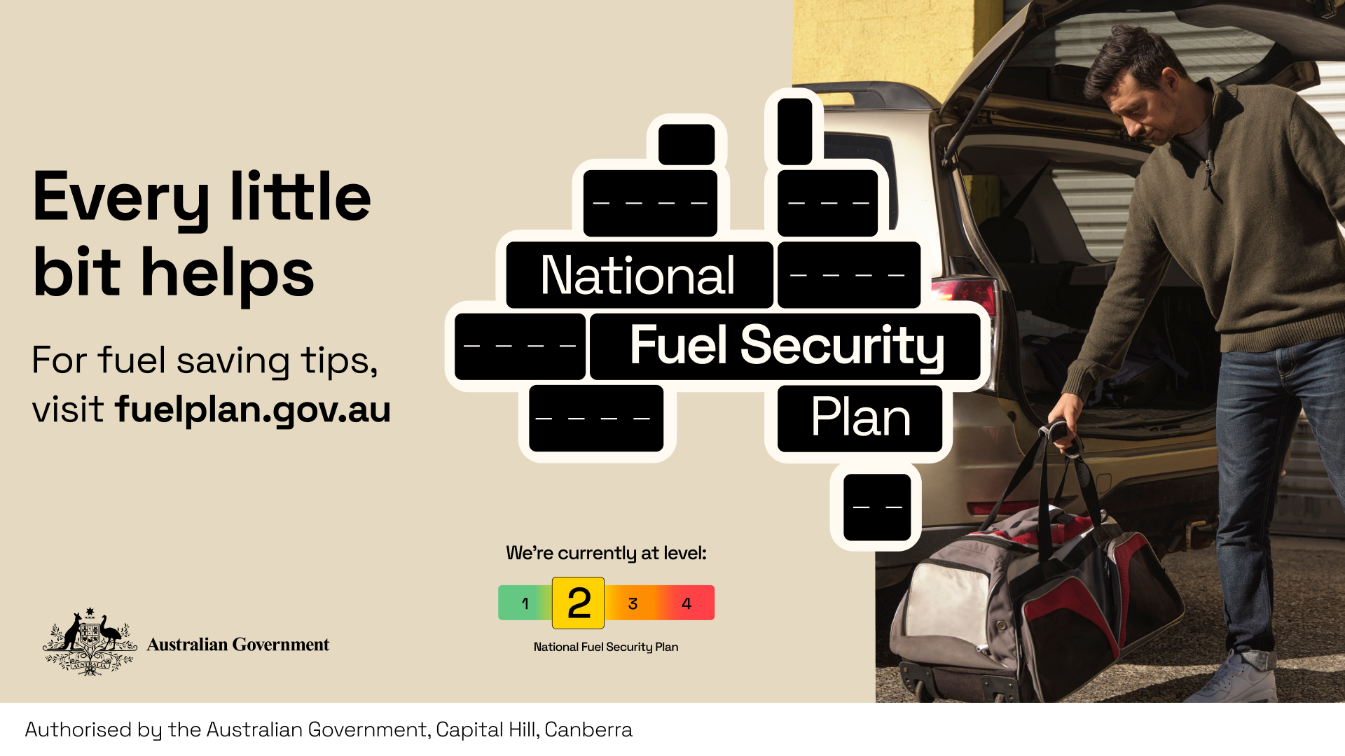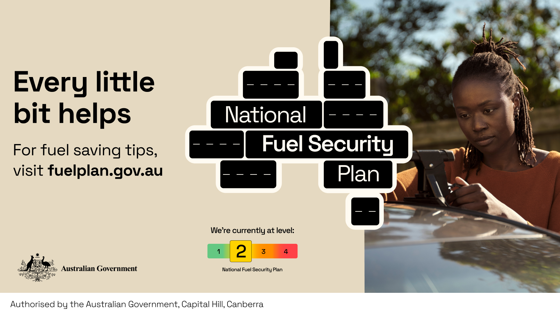 The campaign aims to raise awareness of the National Fuel Security Plan and to help Australian’s feel prepared and supported to take actions during Level 2 of the Plan.